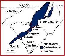 South Carolina had a number of lode gold mines along the Carolina Slate Belt.[42]