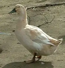 The Golden Cascade is a breed of domestic duck developed in the United States. In 1979, David Holderread of Corvallis, Oregon set out to breed a duck that was fast growing, active, laid eggs well, and was auto-sexing. By the mid-1980s, the Golden Cascade was introduced to the market. It is not yet admitted to the American Poultry Association's Standard of Perfection.