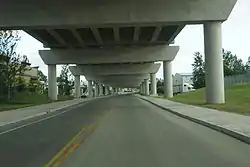The Golden Ears Bridge is a six-lane extradosed bridge[2] in Metro Vancouver, British Columbia. It spans the Fraser River, connecting Langley on the south side with Pitt Meadows and Maple Ridge on the north side. The bridge opened to traffic on June 16, 2009. The bridge replaced a previous ferry service several kilometers upstream and will be run by a private consortium, the Golden Crossing General Partnership, until June 2041.[3]