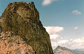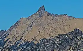 Golden Horn is an 8,366-foot (2,550-metre) mountain summit located in Okanogan County in Washington state. It is part of the Okanogan Range which is a sub-range of the North Cascades Range.[1] Golden Horn is situated north of Methow Pass at headwaters of the Methow River, on land administered by the Okanogan–Wenatchee National Forest. It ranks as the 95th-highest summit in Washington.[2] The nearest higher peak is Tower Mountain, 1.67 miles (2.69 km) to the southeast.[1] The first ascent of Golden Horn was made by Fred Beckey, Keith Rankin, and Charles Welsh on September 18, 1946.[4]