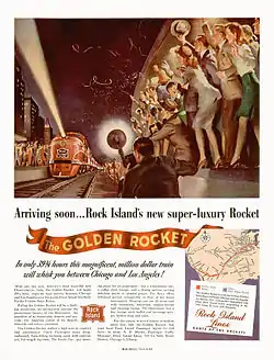 The Golden Rocket was a proposed named passenger train of the Rock Island (CRIP) and Southern Pacific (SP) railroads. Planned in the late 1940s, Southern Pacific eventually pulled out of the agreement and service never commenced.