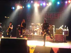 ![]() Goldfinger live in Philadelphia in June 2008. From left to right: Darrin Pfeiffer, Kelly LeMieux, John Feldmann and Charlie Paulson. | |