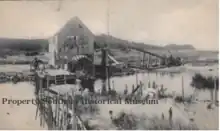 The Peconic Gristmill, also known as the Goldsmith's Inlet Mill, was a prominent mill in the area. It was built in 1839 as a tidal mill, using the power of the tides to turn the millstones that ground grain into flour. In 1870, a tower with vanes was added to the mill to harness the power of the wind as well. This made the mill more efficient and allowed it to operate even when the tides were low. The Thanksgiving Blizzard of 1898 severely damaged the mill, tearing off the windmill and tower from the building.[5] The tower was never restored, and the mill continued to operate with only its water wheel for several more years. However, with the advent of modern mechanization, mills like the Peconic Gristmill became obsolete, and the building was eventually left to deteriorate.[6]
