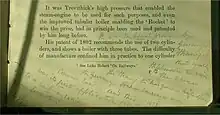 In her copy of the Dictionary of National Biography, all references to the blowpipe were amended by hand to his blowpipe.[9]