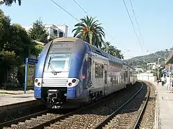Golfe-Juan-Vallauris is a railway station serving Vallauris, Alpes-Maritimes department, southeastern France. It is situated on the Marseille–Ventimiglia railway, between Cannes and Nice. The station is served by regional trains (TER Provence-Alpes-Côte d'Azur) to Cannes, Grasse, Antibes and Nice.[1][2]