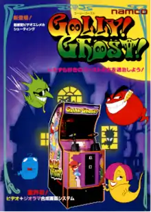 Golly! Ghost![lower-alpha 1] is a 1991 light gun shooter arcade game developed and published by Namco. It employs a diorama which is controlled by the game's driver board to open and close mechanical doors which are connected to solenoids, much like the moveable items on a pinball table. The diorama has five 24-volt globe lights that come on only during gameplay to light up the rooms - and they are all on when the game is being played during the shooting scenes, and off for the cutscenes, title screen, and high scores. The globes are not individually controlled, and are either all on or off; the driver board powers the diorama unit's solenoids and lights via several connectors on the driver board and the guns also plug into the driver board via another small connector (it was the first Namco game to use them). In 2012, the game was adapted into a webcomic for Namco Bandai's ShiftyLook webcomic service.
