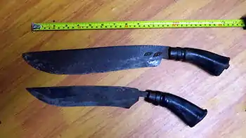 In Asahan Regency, Indonesia, the Golok Rembau is thought to have the magical power to protect its bearer from attack by tigers. Hence sometimes this golok is also referred to as Golok Rimau or Golok Harimau.[3] Because of this belief, men who owned or had been able to borrow the Golok Rembau, exhibited their weapons with complacency and pride.[4]