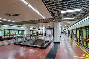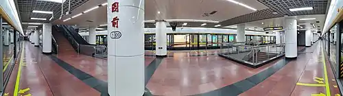 Gongyuanqian Station is an interchange station of Line 1 and Line 2 of the Guangzhou Metro. It started operation on 28 June 1999 and is located under People's Park in Yuexiu District of Guangzhou.[1]