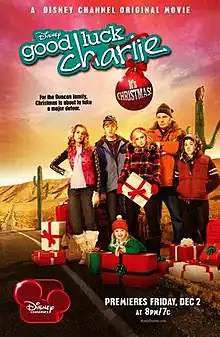 Good Luck Charlie, It's Christmas! (also known as Good Luck Charlie: The Road Trip Movie in the United Kingdom and Ireland) is a 2011 American Christmas road comedy television film directed by Arlene Sanford and written by Geoff Rodkey, based on the Disney Channel Original Series Good Luck Charlie by Phil Baker and Drew Vaupen.[1] The Disney Channel Original Movie stars Bridgit Mendler, Leigh-Allyn Baker, Bradley Steven Perry, Mia Talerico, Eric Allan Kramer, and Jason Dolley as the Duncan family. It follows the Duncan family as they prepare for their Christmas trip to Amy Duncan's parents' house in Palm Springs, California. Things goes awry however when Teddy and Amy find themselves separated from their family after Teddy gives up her seat in exchange for a free plane ticket. With only a few days left until Christmas, the duo will have to face numerous obstacles as they embark on a hitchhiking journey across Utah and Nevada to get to California so they can reunite with their family in time for the holidays.