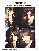 "Good Night" is a song by the English rock band the Beatles from their 1968 double album The Beatles (also known as the "White Album"). It was written by John Lennon and credited to Lennon–McCartney. The lead vocalist on the recording is Ringo Starr, who was the only Beatle to appear on the track. The music was provided by an orchestra arranged and conducted by George Martin. Written for Lennon's five-year-old son Julian, "Good Night" is the final song on the White Album.