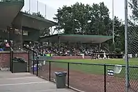 Most of the park's 950-spectator capacity comes from the grandstand located directly behind home plate. The grandstand consists entirely of chairbacked seats. The park also has a section of metal bleacher seating located down the first base line.
