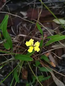 Goodenia delicata is a species of flowering plant in the family Goodeniaceae and is endemic to eastern Australia. It is a low-lying to ascending herb with linear to narrow elliptic leaves mostly at the base of the plant, and racemes of yellow flowers.