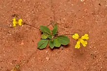 This goodenia grows in sandy soil on dunes and is widely distributed in the drier areas of the Northern Territory, Western Australia and South Australia.[2][4][6][5]