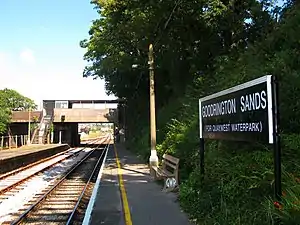 Goodrington Sands railway station is on the Dartmouth Steam Railway, a heritage railway in Devon, England. It is close to Goodrington Sands beach and the Splashdown Quaywest water park in Paignton. There has been no scheduled service at the station since 2020.