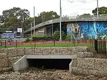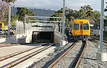 The Goodwood Junction Upgrade separated the existing freight and Belair passenger lines from the Seaford line by a grade separation. A rail underpass near Victoria Street lowered the Seaford line below ground level, with the freight and Belair lines above. It was completed in 2014 along with the electrification of the Seaford line.[5][6] A project to construct a footbridge adjacent to the Goodwood Overpass was announced in May 2016, and would provide a new access point to the station;[7] though as of 2018 work has not commenced.