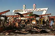 One of the earliest organizations in the country that advocated for the preservation of Googie architecture was the Los Angeles Conservancy Modern Committee, which was formed in 1984 in response to the demolition of Ship's coffee shop in Westwood and Tiny Naylor's Drive-In in Hollywood.[40] Despite the loss of these and the original Googie's in Hollywood, other Googie coffee shops including Norms Restaurants,[41] Johnie's Coffee Shop,[42] and the Wich Stand[43] have received historic designations. The world's oldest McDonald's in Downey and the earliest remaining Bob's Big Boy in Burbank, have also been preserved and restored.[44]