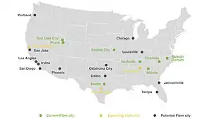 {{cite web}}:|author=has generic name (help) - Kish, Dennis (January 27, 2015). "Google Fiber is coming to Atlanta, Charlotte, Nashville and Raleigh-Durham". Official Google Fiber Blog. Retrieved March 25, 2017.