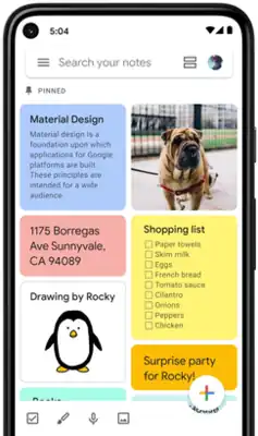 Google Keep was launched on March 20, 2013 for the Android operating system and on the web.[19][20] The Android app is compatible with Wear OS.[21][22] Users can create new notes using voice input, add and check off items in lists and view reminders.[23]