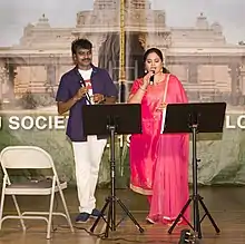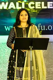 Gopika Poornima is an Indian singer who mostly sings for Telugu, Tamil, and Kannada language films.[1][2][3] She became popular with the singing competition Padutha Theeyaga. Her husband Mallikarjun is also a singer and composer in Telugu Film Industry.[4][5]