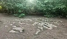 Goram is commemorated in the features Goram's Chair and Footprint (some versions seem to treat these as the same thing, saying that the Chair was formed by the giant stamping his foot) and Soap-Dish in the gorge of the Hazel Brook. A pub of the early 1960s on the Lawrence Weston housing estate in west Bristol is called The Giant Goram,[8] and from about 1954 sporadically to 1996, there was a funfair bearing Goram's name on the Blaise Castle landed estate (by then in the hands of Bristol City Council) in Henbury.[3][9]