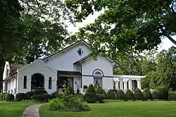Gordon C. Felts House is a historic home located at Galax, Virginia. It was completed in 1930, and is a large 2+1⁄2-story stuccoed brick dwelling in the Mission Revival style. It features a terra cotta mission style gabled roof. It also has a large bluestone terrace covered by a pergola supported by six large Grecian Doric order columns, on the south side the house has an enclosed sleeping porch defined with four large Grecian Doric columns. Also on the property are a contributing garage / apartment and playhouse.[3] Currently owned by Nancy and Dr. Samuel B. Luague.