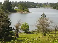 Before European development the Coast Salish Songhees people lived in settlements to the east of the harbour and the Esquimalt people lived to the west of it. They cultivated camas root and other crops in meadows lined with cultivated Garry oak trees along the harbour.[7] Shell middens along the Gorge Waterway are evidence of human habitation dating back 4000 years.[8]