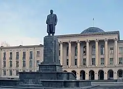 Stalin's association with the city is emphasized by the Joseph Stalin Museum in downtown Gori and, until recently, the Stalin monument in front of the Gori City Hall, one of the few such monuments to survive Nikita Khrushchev's de-Stalinization program. The monument was a source of controversy in a newly independent Georgia in the 1990s, but for several years the post-communist government acceded to the Gori citizens' request and left the statue untouched.[22][23] It was ultimately removed on June 25, 2010.[24] However, on 20 December 2012, the municipal assembly of Gori voted to reinstate the monument.[25][26]