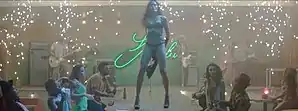 Mars performed the song, aside from the tour, at the 2013 MTV Video Music Awards (VMA's) and 2013 MTV Europe Music Awards (EMA's).[69][70] On the latter, he recreated his provocative music video with Nicole "The Pole" Williams.[69][71] During these performances there was a green color scheme with a neon sign pulsating in the background with the same color.[69][70] At the 2013 MTV VMA's, Mars was standing high up on a platform, while wearing a "leopard-print button-down". Whilst there was a screen with a giant gorilla face behind him and lasers firing through the stage.[70][72] He kicked his mic stand over and over, while his band was jamming along. Meanwhile, some pyrotechnics "shooting off at the climax" and "blasts of fire erupted during the chorus".[70][72] At the 2013 MTV EMA's, Mars had a similar style too Lou Reed and aviator sunglasses.[73] On this performance, his face was "superimposed" over Williams dancing around a stripper pole with "acrobatic ease" and "breathtaking moves in time to the song".[69][71][74] During the bridge of the song, the singer played a guitar solo while Williams stand in the crab position thrusting her hips towards Mars's guitar in the same tempo.[69][74] The song was the final act on both set lists of The Moonshine Jungle Tour (2013–2015).[75][76] It was also performed in selected shows of not only Bruno Mars at The Chelsea, Las Vegas (2013–2015), but also during the 24K Magic World Tour (2017–2018).[77][78]