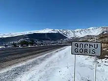 The M-2 Highway that connects the capital Yerevan with southern Armenia and the Nagorno-Karabakh Republic passes through Goris. Since November 2021, the Goris-Kapan road that connects the town with Kapan and at some points crosses the de facto Armenia-Azerbaijan border has not been in use due to the establishment of Azerbaijani border controls on the road, with an alternative route going through Tatev being used instead.[26]
