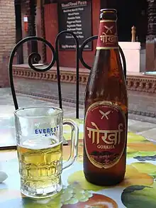 ![]() Glass and bottle of Gorkha Beer. | |