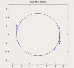 The action of this apparent flow on each foil section generates both a lift and drag force, the sum of which is shown in the figure above titled "Net force vectors". Each of these net force vectors can be split into two orthogonal vectors: a radial component and a tangential component, shown here as "Normal force" and "Axial force" respectively. The normal forces are opposed by the rigidity of the turbine structure and do not impart any rotational force or energy to the turbine. The remaining force component propels the turbine in the clockwise direction, and it is from this torque that energy can be harvested.