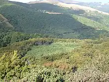 The introduction resulted in large spreading infestations over hundreds of hectares, peaking in the late 1940s. It was recognised as a threat as early as 1861 with the Provincial Council in Nelson passing an act to prevent the planting of gorse hedges.[3] The seed can lie dormant on the ground for up to 50 years, germinating quickly after the adults have been removed. Unfortunately, most methods of removing adult gorse plants, such as burning or bulldozing them, create the ideal conditions for the gorse seeds to germinate and total eradication with current technology seems impossible. Gorse is now one of the most widely recognised agricultural weeds in New Zealand. It covers 700,000 hectares (1,700,000 acres) at varying densities — a total of 5% of the land area of New Zealand when excluding existing indigenous forest, vegetated sub-alpine and alpine areas.[4] Gorse became New Zealand's most costly weed to control, an estimated $22 million per annum by the early 1980s.[5]
