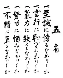 Gosei (五省, go-sei, lit., five reflections) are subjects for daily meditation at Japan's Naval Academy.