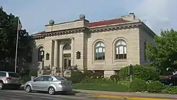 Goshen Carnegie Public Library, also known as the Goshen Public Library, is a historic Carnegie library located at Goshen, Elkhart County, Indiana. It was built in 1901, and is a 1+1⁄2-story, Beaux-Arts style building clad in Bedford limestone. It has a red tile roof and projecting entrance pavilion with two Tuscan order columns. Its construction was funded with $25,000 provided by the Carnegie Foundation.[2]: 2–3