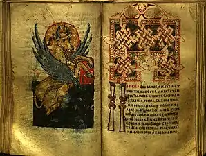 The Gospel of Saint Nicholas (Serbian Cyrillic: Никољско јеванђеље) is a Serbian illuminated manuscript written on parchment in 13th from the Monastery of St. Nicholas of Rošci, with size of 16x10.5 cm, 144 pages and 17 editions of text on each of the pages decorated with illuminations, initials and flags, gold and silver details. According to the historian Pavel Šafarik (1858), this Gospel he calls it "The Gospel of Queen Jelena", was written for Helen of Anjou, between 1240 and 1250.[1]