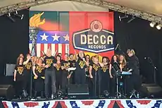 The Edinburgh branch, contains a smaller core, known as the Performance Choir, who sing at numerous invited events throughout the year, including regular appearances such as the Royal Highland Show and switching on the Christmas Lights on George Street in Edinburgh’s Light Night (which features an audience of up to 20,000).[2][3] Other notable appearances included Traquair Fair in August 2015[4] and the Ross Bandstand in Princes Street Gardens (under the shadow of Edinburgh Castle) in May 2014.[5] More exclusive (but still public) events include Harvey Nichols (Edinburgh) Christmas party, and Ocean Terminal, Edinburgh.