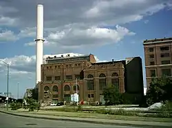 The Gould Street Generating Station was a former 100 MW electric generating plant operated by Exelon that was located on Gould Street in south Baltimore, Maryland, USA. The plant was adjacent to an elevated section of freeway I-95 and was south of the Riverside neighborhood and west of the Locust Point neighborhood of Baltimore. The plant site, located on the shore of the Middle Branch of the Patapsco River, was used for the generation of electric power for over one hundred years before being shut down on June 1, 2019.[1][2] The site was purchased by Greenspring Realty Partners, Inc. for $3.1 million in December 2019.[3] Demolition began in October 2020. The original brick buildings, the large storage tanks behind them, and other minor structures on the southwest portion of the property were demolished as of March 2021, but as of April 2022 the larger steel building to the northeast on the property remains. A large portion of the property was acquired by Weller Development in July 2021 and the future of the remaining structure and the property is not known.[4]