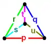 Existence requires each of the 3-node subgraphs of this graph, (p q r), (p u s), (q t u), and (r s t), must correspond to a Schwarz triangle.
