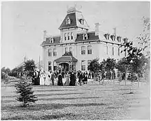 Prior to the foundation of Manitoba, the Lieutenant Governor of the Northwest Territories occupied a designated residence within the walls of Upper Fort Garry; a house that was, at one point, used by Louis Riel as president of the provisional government of Red River. After the new province joined Confederation on 15 July 1870, a structure five kilometres outside of Winnipeg was leased for use as the lieutenant governor's residence, known as Silver Heights,[3] but it was found unsuitable, given its size and distance from the capital. Instead, the lieutenant governor remained at Upper Fort Gary until the present Government House was completed.[4]