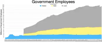 Government employees in the United States includes the United States federal civil service, employees of the state governments of the United States, and employees of local government in the United States.