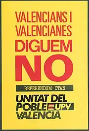 Against the odds, Felipe González - who announced that he would resign if the "NO" vote won, something that seemed to have influenced many voters - eventually managed to turn the polls around and the "YES" vote won in the March 12, 1986 referendum, albeit by a narrow margin. A total of 11.7 million voters (52%) were in favor of the membership, 9 million (40%) voted against, while 6.5 million voted blank. The "NO" vote won in four communities: Catalonia, the Basque Country, Navarre and the Canary Islands.[34] In the Basque Country, the anti-NATO campaign favored the growth of Herri Batasuna, the party of the Abertzale left, winning 5 places in the October 1986 elections.[35]