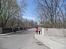 Governor's Bridge is a bridge and small neighbourhood in Toronto, Ontario, Canada, located to the east of Rosedale and Moore Park neighbourhoods. Unlike them, it was part of the former city of East York. The neighbourhood is named for the Governor's Bridge that crosses the Moore Park Ravine from Douglas Crescent to Astley Avenue and connects the area to Rosedale. The bridge was built in 1923 and restored in 2000.