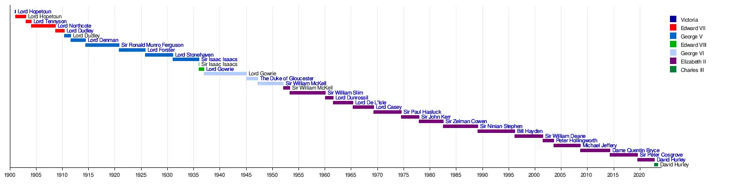 - "Governors-General". Australian Government. Archived from the original on 23 September 2015. Retrieved 1 January 2015.