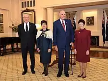 Many of the governor-general's community functions have a ceremonial dimension, such as attendance at the official openings of buildings, addresses to open conferences, or launching special events and appeals. The governor-general attends state banquets and receptions, making and hosting state visits, meeting ceremonial groups, and awarding medals and decorations.[82] As well as attending public events, the governor-general hosts many community functions at Government House, Wellington, such as a garden reception to mark Waitangi Day.[83] According to the official website of the governor-general, in a typical year over 15,000 people will attend such events.[77]