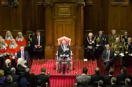 The governor-general summons and dissolves the New Zealand Parliament, acting in the absence of the sovereign.[12] Each parliamentary session begins with the governor-general's summons. The new parliamentary session is marked by the opening of parliament, during which the governor-general delivers the 'Speech from the Throne' in the Legislative Council Chamber, outlining the Government's legislative agenda.[55] Dissolution ends a parliamentary term (which lasts a maximum of three years), and is followed by a general election for all seats in the House of Representatives.[n 3] These powers are almost always exercised on the advice of the prime minister, who also determines the date of an election. The governor-general may theoretically refuse a dissolution, but the circumstances under which such an action would be warranted are unclear.[45] It might be justified if a minority government had served only briefly and another party or coalition seemed likely to have better success in holding the confidence of the House.[n 4]