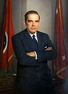 Tennessee has had 50 governors, including the incumbent, Bill Lee.[4] Seven governors (John Sevier, William Carroll, Andrew Johnson, Robert Love Taylor, Gordon Browning, Frank G. Clement, and Buford Ellington) have served non-consecutive terms. This tally does not include William Blount (the territorial governor) or Robert L. Caruthers (who never took office), though the Blue Book includes them in its list of governors.[5] All governors are counted only once, regardless of number of terms served (e.g., John Sevier is considered the 1st governor, rather than the 1st and 3rd governor). The Blue Book does not include Edward H. East in its list of governors.