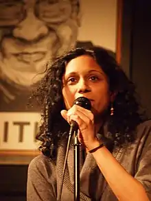 Her poems are available in Split This Rock's The Quarry,[3] Beltway Poetry Quarterly,[4] Bourgeon,[5] Lantern Review,[6] Washington City Paper,[7] and On Being.[8] She was also a member of the 2010 D.C. Southern Fried Slam Team[9] and has performed at Lincoln Center Out of Doors, the Kennedy Center’s Millennium Stage, Smithsonian Folklife Festival, Smithsonian Asian American Literature Festival,[9] and Dakshina/Daniel Phoenix Singh Dance Company events co-sponsored by the Poets & Writers Readings/Workshops program.[1]
