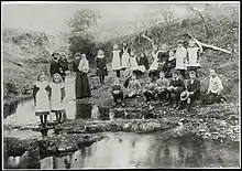 A Methodist church was built to replace the Union Church and opened on 6 October 1933 by the senior Methodist lady in the district and Postmistress, Annie (Mrs William) Moore (née Mason). Annie's husband, William, was the first non-teacher postmaster and after his death in 1905, Annie ran the post office until 1933. William and Annie had a small farm along Spring Creek, a little downstream from where the Methodist Church was built.[15]