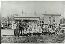 The residents of Gowrie made an application for the establishment of a school in 1880 and appropriate land had been identified by July 1881. A 0.8-hectare (2.0-acre) block was formally dedicated for school use on 12 January 1883 and a further 8 hectares were added on 21 August of the same year. Inspector Mr W. F. Thompson recommended the building of a weatherboard school to accommodate forty-five pupils and a residence with three rooms and a kitchen at an estimated total cost of £650. His recommendation was adopted and tenders were called in August 1882. The school opened in February 1884 with John Reily as its teacher. He was to remain there until August 1886.[8][9]