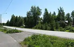 In September 1980 Alskatvägen was opened, stretching from Vaasa to Replot-Björköby, through Grönvik.[17][18][19] This reduced the driving distance and time from the village to Vaasa, contributing to a lively immigration to the village from 1983 to 1993.[19] At the glassworks bank there have been a harbour place, and a bit north along Alskatvägen, another one.[6] A public beach, maintained by the municipality, and some old boat houses, are now found on the former place of the latter.[6][20][21] As Grönvik lies on land affected by post-glacial rebound, the Grönvik flad, which borders the shore of the village, will in the future will become a gloe lake.[6] This means that the bank areas of Grönvik can no longer be reached by larger boats.[6]